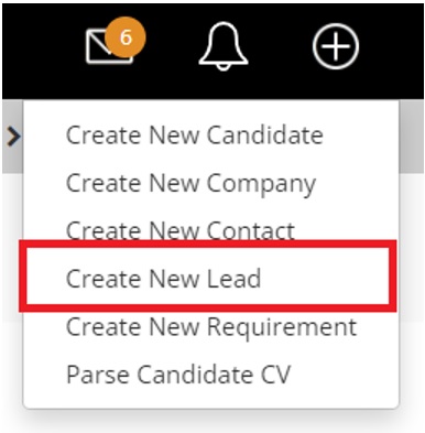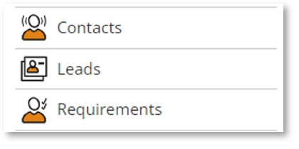 From the main navigation menu the ‘Leads’ option will be shown between ‘Contacts’ & ‘Requirements’.